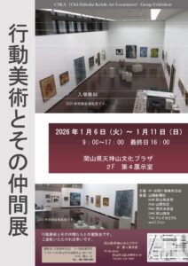行動美術とその仲間展1.6~1.11 2026年 2026年1月6日(火)〜1月11日(日)9:00〜17:00(最終日〜16:00)1/11(日)13:00~ ギャラリートーク岡山県天神山文化プラザ 2階第4展示室岡山県岡山市北区天神町8−54https://www.tenplaza.info/